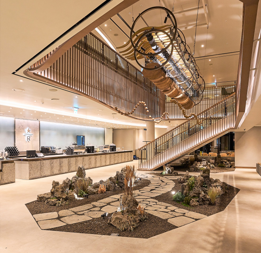 매장은 리저브 바, 티바나 바, 드라이브스루 모두 결합된 형태로 운영되며, 건물 3층 루프탑까지 갖춘 설계 입니다.