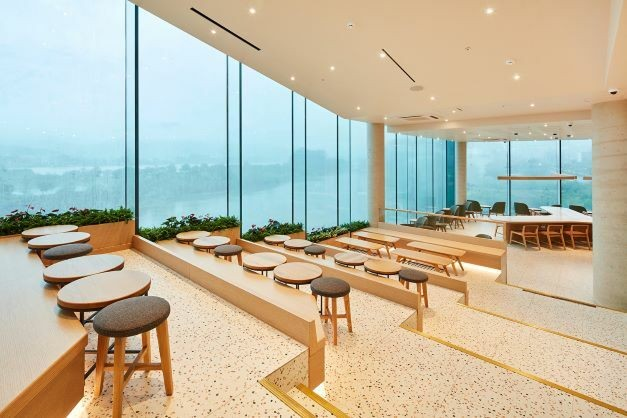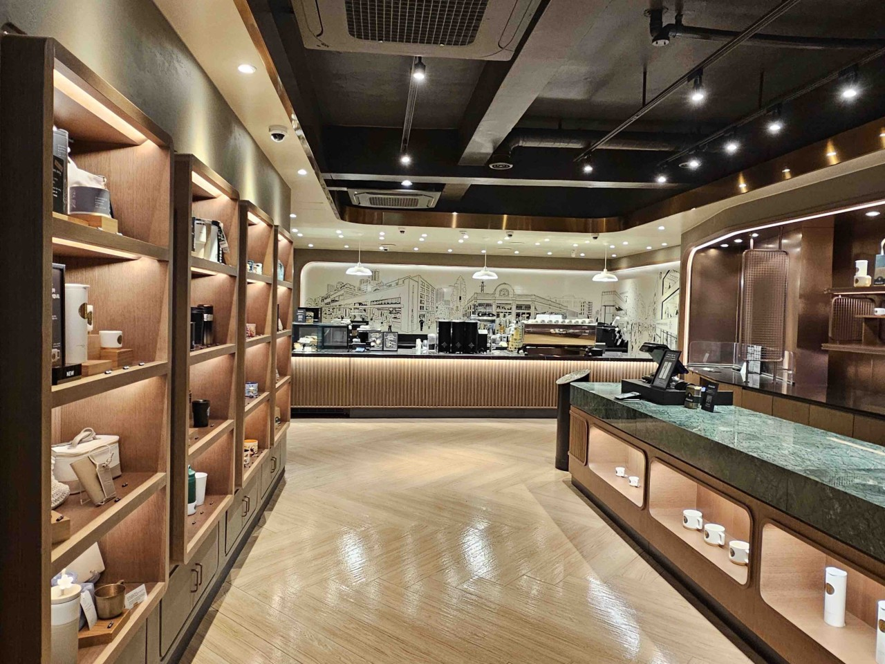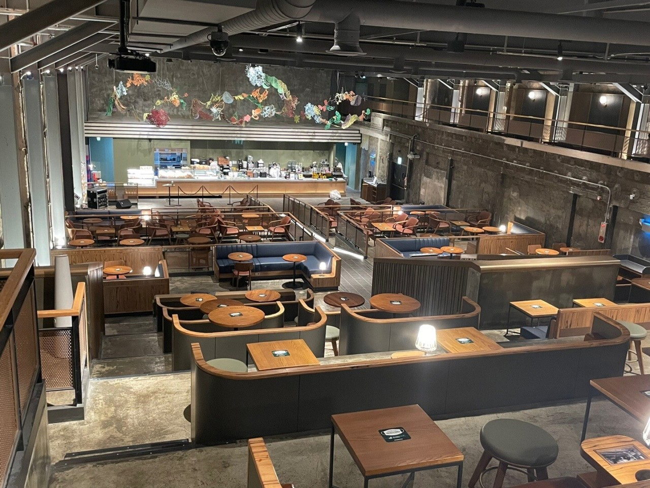 매장은 리저브 바, 티바나 바, 드라이브스루 모두 결합된 형태로 운영되며, 건물 3층 루프탑까지 갖춘 설계 입니다.