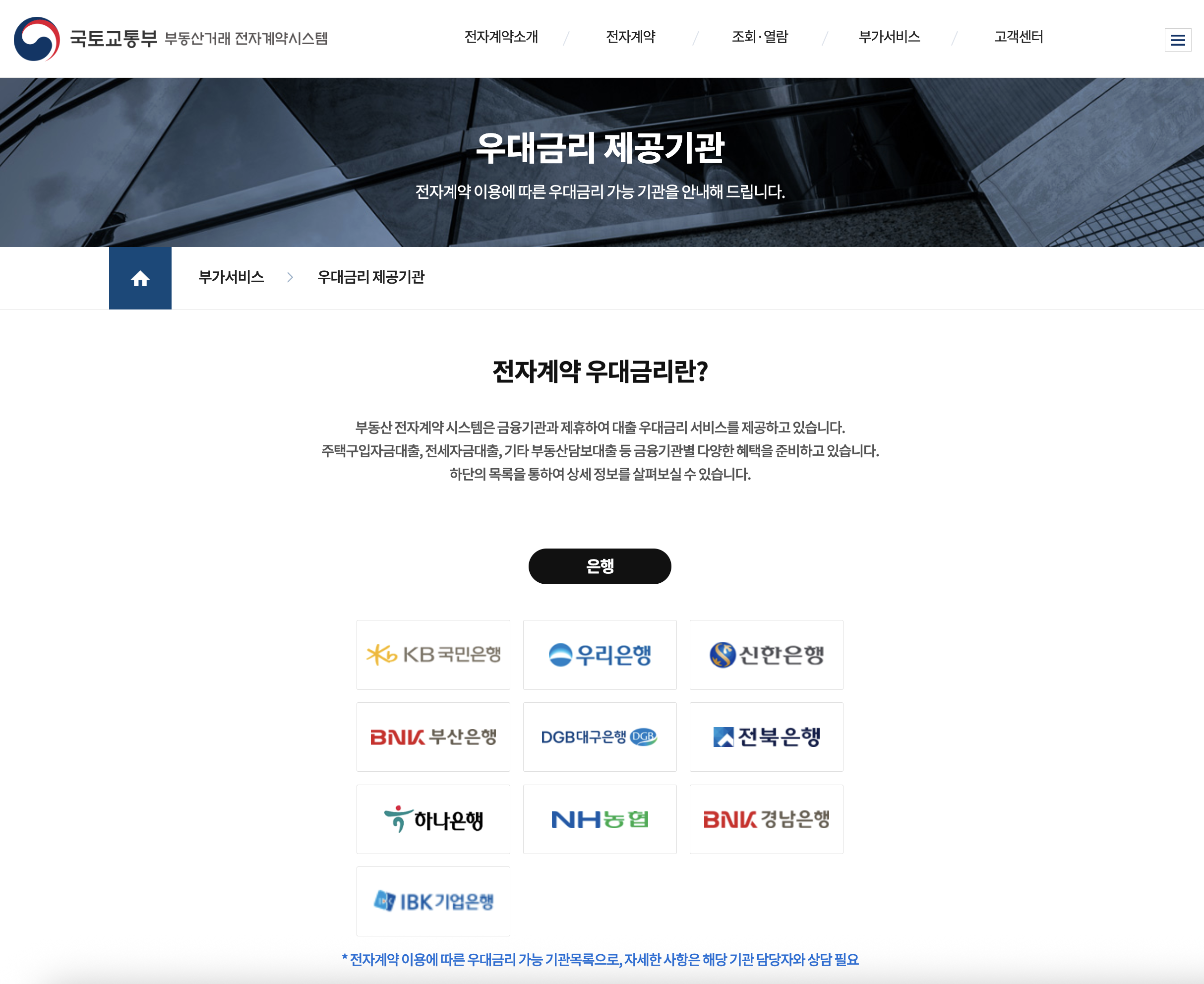 | 금리우대 | 주택담보, 전세자금대출 시 전자계약 이용하면 0.1 ~ 0.2% 포인트 인하 가능 |