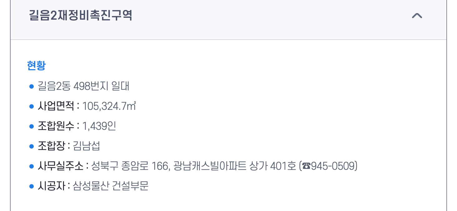 • 길음1~4구역: 이미 준공 완료된 구역이거나 입주한 단지들이 있는 상태입니다. 예컨대 성북구 웹사이트 자료에서 1구역~4구역 사업면적과 완료 연도가 나와 있습니다.